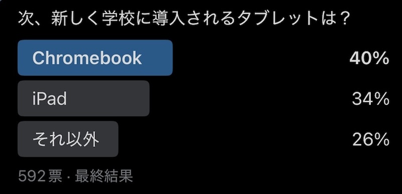 実際、当時は半数以上の自治体がChromebookを選択しており、iPadは約4分の1にとどまっていました。