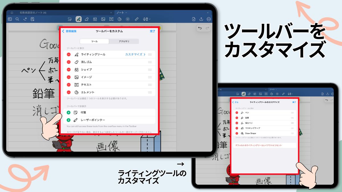 ※ちなみにライティングツールの中もカスタマイズができます