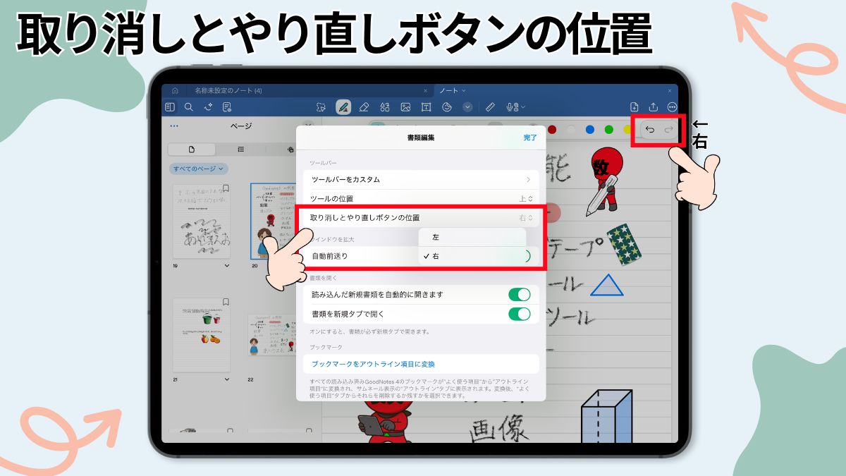 また、サイドバーは左右どちらに表示するかも変更可能なので、利き手やiPadの持ち方に合わせて調整できます。