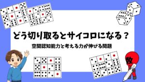 「これ、どこで切ったらサイコロになる?」 今回のテーマは「サイコロ」。 バラバラのマスから、正しく切り取るとサイコロになる部分はどこなのか?ルールはシンプルですが、頭の中で立体をイメージする力が必要になります。 ✔ 算数 […]